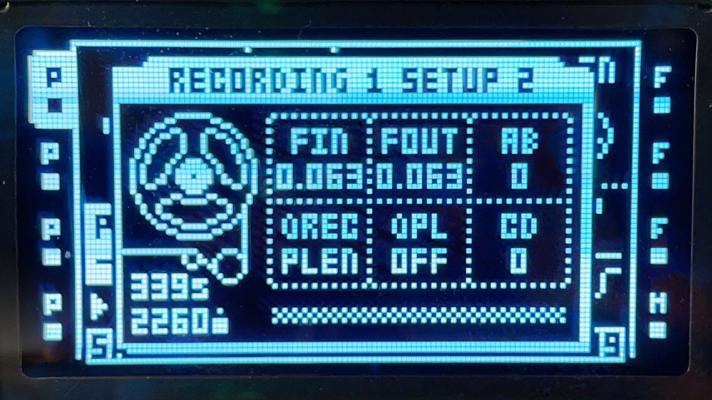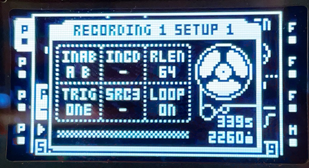 And now as I’m typing this, I realize that actually, I could probably set all 4 tracks to be double the length of the master. Because here is another weird thing: the first loop you record, regardless of the track number, is the master. So, if they are all set to record 64 steps (which they are) and all set to be double the length of the master (arg, why?) then after I do my first recording of 4-bars, I can just double (or x4 or x8) the rest of the tracks.