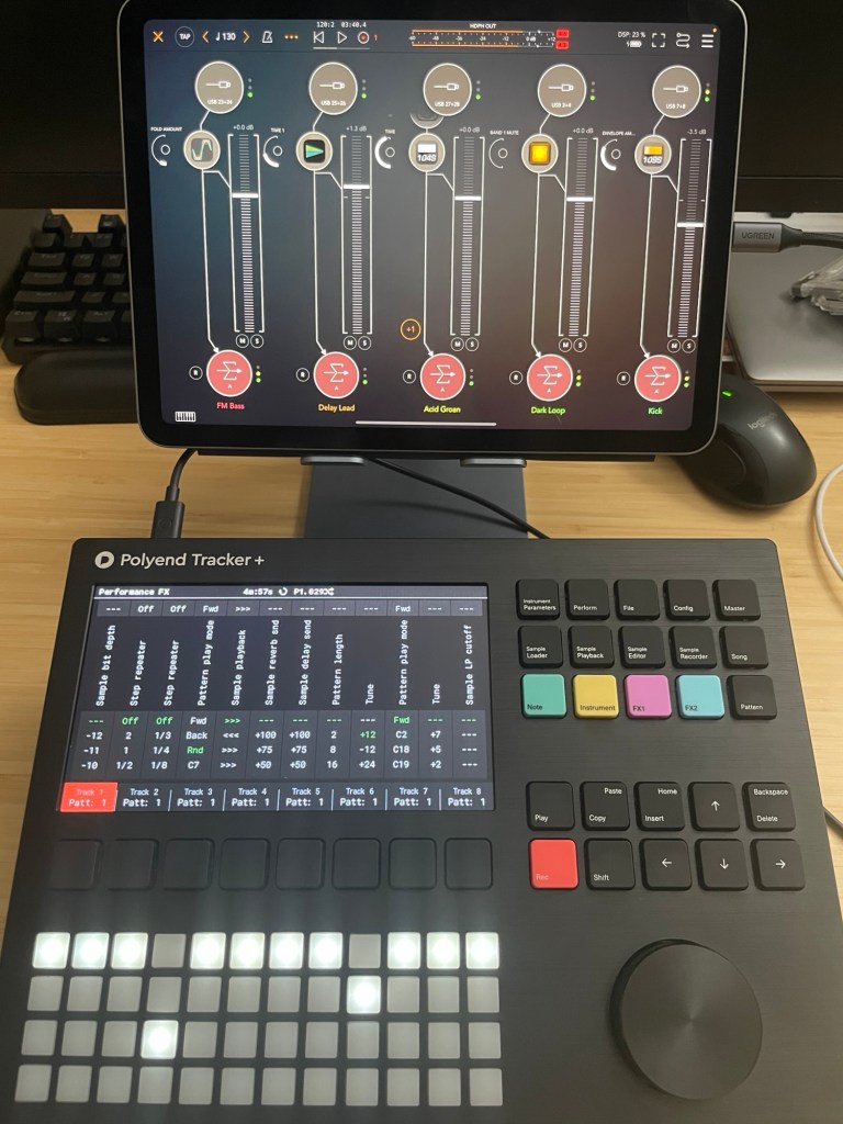 Another fun use case with the Polyend Tracker Plus. Here I am running it into AUM on the iPad with different effects on each track. Why can’t more devices have class compliant multitrack audio over usb? This was so easy to set up and create a track with. As for the song itself, not much to say here. I sliced a couple loops up. Added some synths and a kick part. Messed around with performance effects and fading things in and out. I actually wanted the tail end to be its own minimal glitch track. Maybe another time.