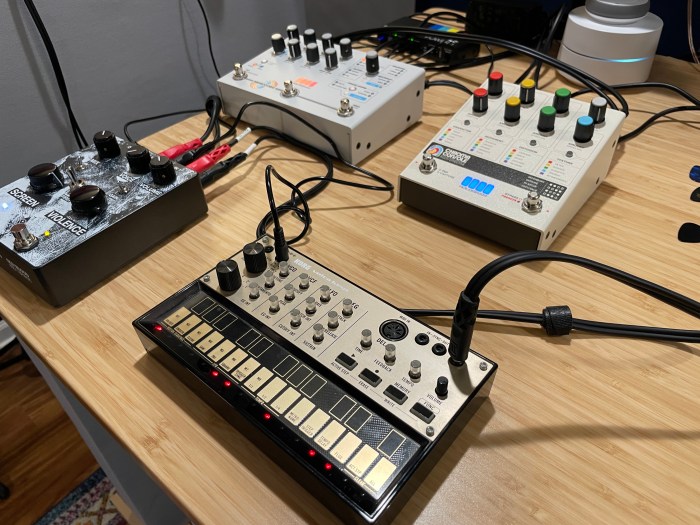 I wasn’t sure how I wanted to wrap up the month. Do I do some big finale? Work harder on a piece? Incorporate all the gear I’ve used this month? That all seemed like a lot of work. So, I went for simple, and also something that looked back a little. The Korg Volca Keys is one of the first pieces of hardware I bought in my new musical phase that started back in 2019 (along with the OP-Z and some Pocket Operators). I don’t use it as much anymore, but when run through effects, it can be so beautiful. Here I put it through the Old Blood Noise Endeavors Screen Violence (adjusting the drive throughout) and then into the Microcosm (the Chroma Console sits this one out). This is also fitting because the Microcosm was one of the first effects pedals I bought in this new era and has been my go-to on so many ambient tracks, especially the fourth Mosaic setting.